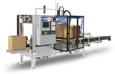 The WF30 is available for pressure sensitive tape case sealers or hot melt glue forming.