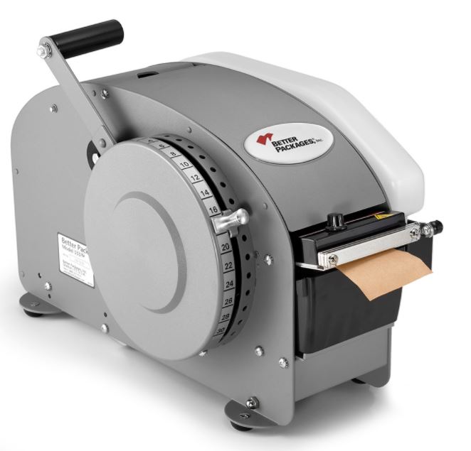 The same features as the Better Pack 333 Plus with an added top heater for enhanced tape adhesion. The Better Pack 333 is a rugged, reliable, simple-to-use manual water-activated tape dispenser. (The Better Pack 333 is also known as a paper tape dispenser, gummed tape dispenser or gum tape machine etc.). The Better Pack 333 has 15 preset tape lengths measured in inches on a dial. This model includes a top heater accessory and it requires electricity. With the addition of heat, the water in the reservoir is not only warmed faster but optimizes the tapes adhesive properties.
