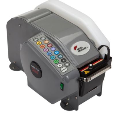 The Better Pack 500 is a simple-to-use electronic water-activated tape dispenser (also known as a paper tape dispenser, gummed or gum tape dispenser, Kraft tape dispenser). The Better Pack 500 uses reinforced and non-reinforced water-activated tape, gummed side in or gummed side out.