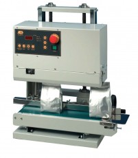 The Audion TT 550V is a tabletop vertical band sealer that is ideal for packaging liquids or solid product packages that are best sealed when standing up. The TT 550V works well in applications that require accurate control of sealing temperature for consistent seal integrity. This sealer features adjustable supports on the belt that guide the package during the sealing process. The height of the sealing unit can be adjusted to suit different sizes of packages. This machines seals polyethylene, polypropylene, and laminates.