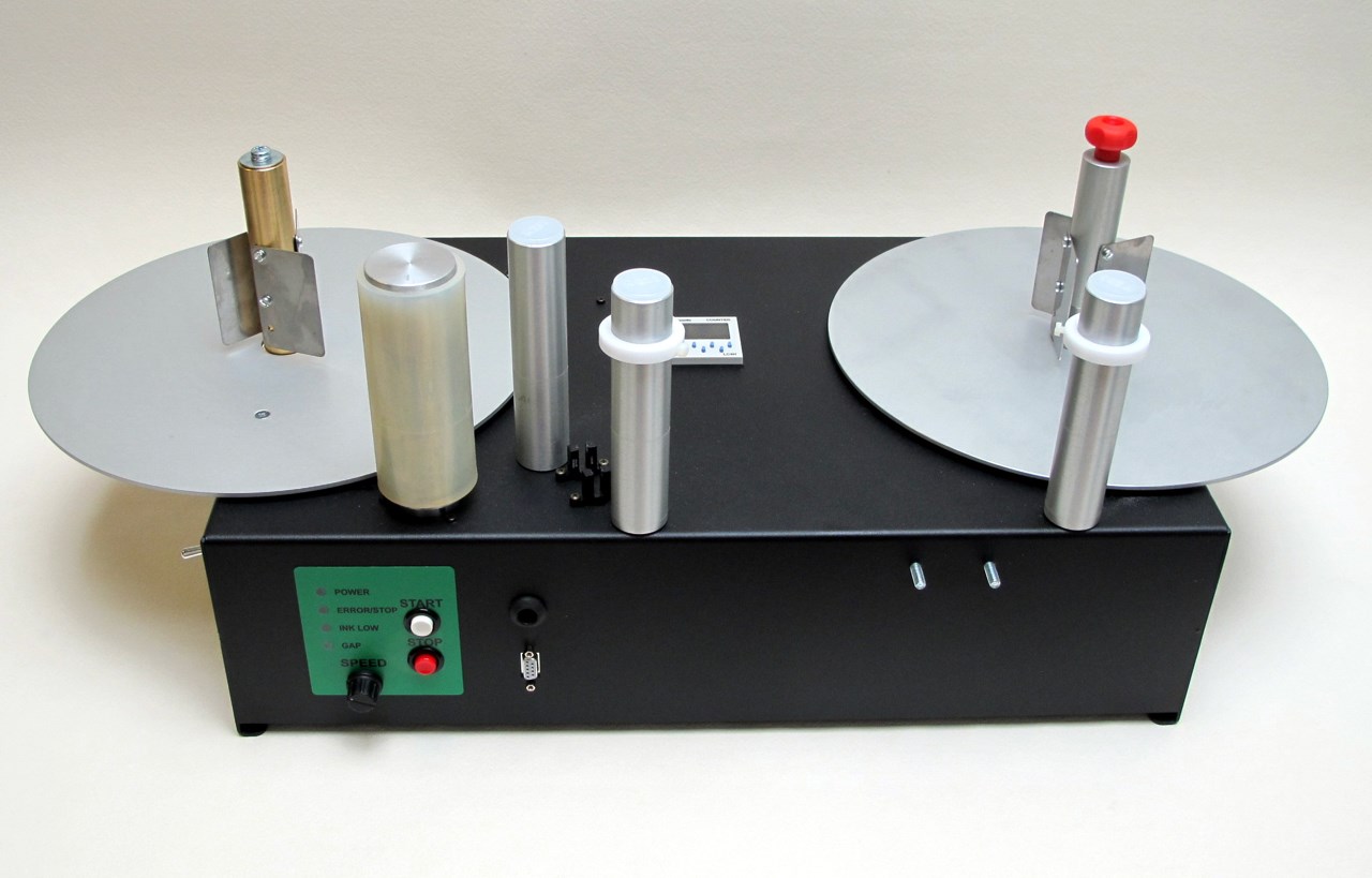 The PM-300 Reel-to-Reel Printer Mechanism from LABELMATE. At speeds up to 235cm/sec, you can conveniently and economically print or overprint labels using your preferred inkjet head. With full status indicators and control features, the PM-300 is an ideal table top platform for OEM applications that use an ink-jet head. When not used as a printer, the PM-300 can be used as a reel-to-reel Counter Rewinder. The built-in encoder has a resolution of 0,041mm.The PM-300-LS will print a 28cm diameter roll (425 meters) of labels in less than 7 minutes; the PM-300-HS will print the same roll in less than 5 minutes. The model choice is dictated by the performance of the inkjet head being used.