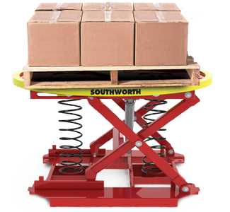 - Heavy-duty springs calibrated to bring pallet to most convenient height.