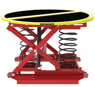 The PalletPal 360 Spring Pallet Positioner / Level Loader is the original, automatic, self-leveling, spring pallet leveler that makes loading and unloading pallets faster, safer and easier. This simple, automatic load leveler uses a system of springs and shock absorbers to lower and raise loads as boxes are added or removed from pallets. A turntable top allows nearside loading and unloading. No power or air supply is required. Pallet loads up to 4,500 lbs can be easily handled by this spring leveler.