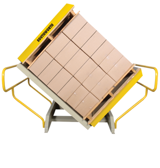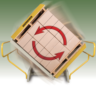 With the ability to handle pallet loads measuring up to 48″ x 48″ x 84″ high, the Southworth PalletPal Pallet Rotator / Pallet Inverter is a simple, rugged machine designed to invert entire pallet loads. The pressure adjustable clamping mechanism easily secures loads up to 4,400 pounds and rotates them 180 degrees on a massive anti-friction turret bearing.