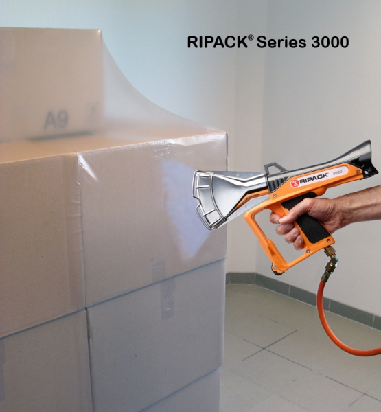 The new RIPACK® Series 3000 can wrap a Euro-pallet of one meter height in less than a minute with his heating power adjustable from 153 to 260 000 btu/h.