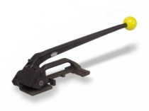 The A301 manual steel tensioner is designed for use with heavy, flat packages like steel, metals and forest products. This rugged and reliable hand tool can handle steel strapping thicknesses up to .040 (1.00 mm) for heavy-duty applications. The feed-wheel tensioning systems allows for unlimited steel strap take-up.