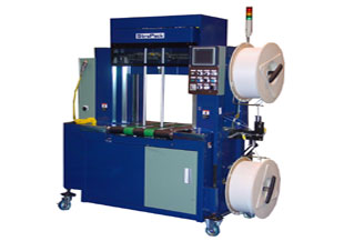 The reliability, speed, ease of operation and low maintenance of the RQ-8 strapping machines are now available in a fully-automatic model designed to serve the high-speed printing/publication applications. At 54 cycles per minute, the RQ-8N has a throughput of up to 40 bundles per minute. In addition to the standard features such as easy strap loading, auto re-feed, loop ejection and lubrication free operation, the RQ-8N is equipped with dual strap dispensers and an Automatic Coil Changer that allows continuous operation even after a coil of strap runs out. Pneumatic side and front squaring and soft bundle press as well as Automatic Tension Control insure bundle integrity. The variable speed conveyor with inverter control provides easy integration into any automated line and the flexibility to maximize line productivity. The optional, operator friendly touch screen panel makes operation easy. On screen prompts guide you through the adjustable settings for the press and squaring devices and provides production and trouble history logs.
