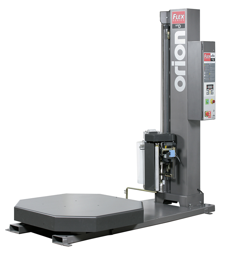 The Flex series high profile deluxe pallet wrapper models have been designed and built with economy, efficiency and safe operation in mind. These stretch wrapping machines will give you all of the features you need to wrap pallet loads quickly and efficiently, using the least amount of stretch film. With several available options like extended base or mast, or 30 film carriage, you can be have your Flex machine built to do exactly what you need it to do. The Flex Series high profile deluxe is easy to install with a new dual turntable option for an existing machine. Other advantages of the Flex Series high profile deluxe include its low cost alternative to purchasing a second machine, its separate turntable base design with a plug-in for a second turntable, making moving the machine from location to location very fast and easy, and its identical turntable chassis to original stretch wrapper, which enables seamless integration.