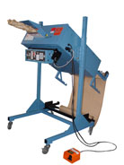 Width: 34″ Height: 13″ Depth: 65″ Weight: 495 lbs Power: 120 VAC, 60 Hz, 10.4 Amps Feed Rate: 16 inches/second Controls: Located on remote box Cut Method: Electronic motor with clutch Packing Height: 42″ – 62″ (chute height)